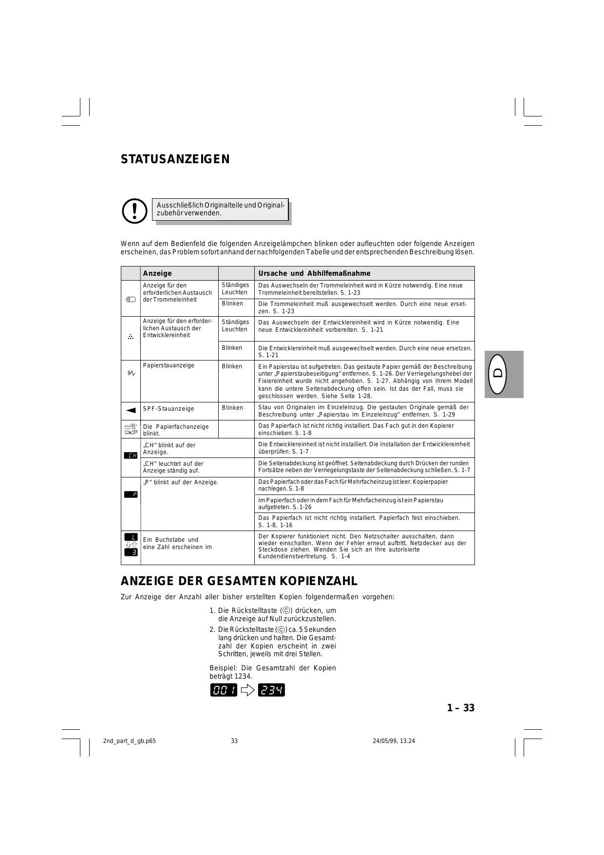 key for approximately 5 seconds. The total number of copies will appear in two steps, each with three digits. Example: Total number of copies is 1,234. 1 – 32 2nd_part_d_gb.p65