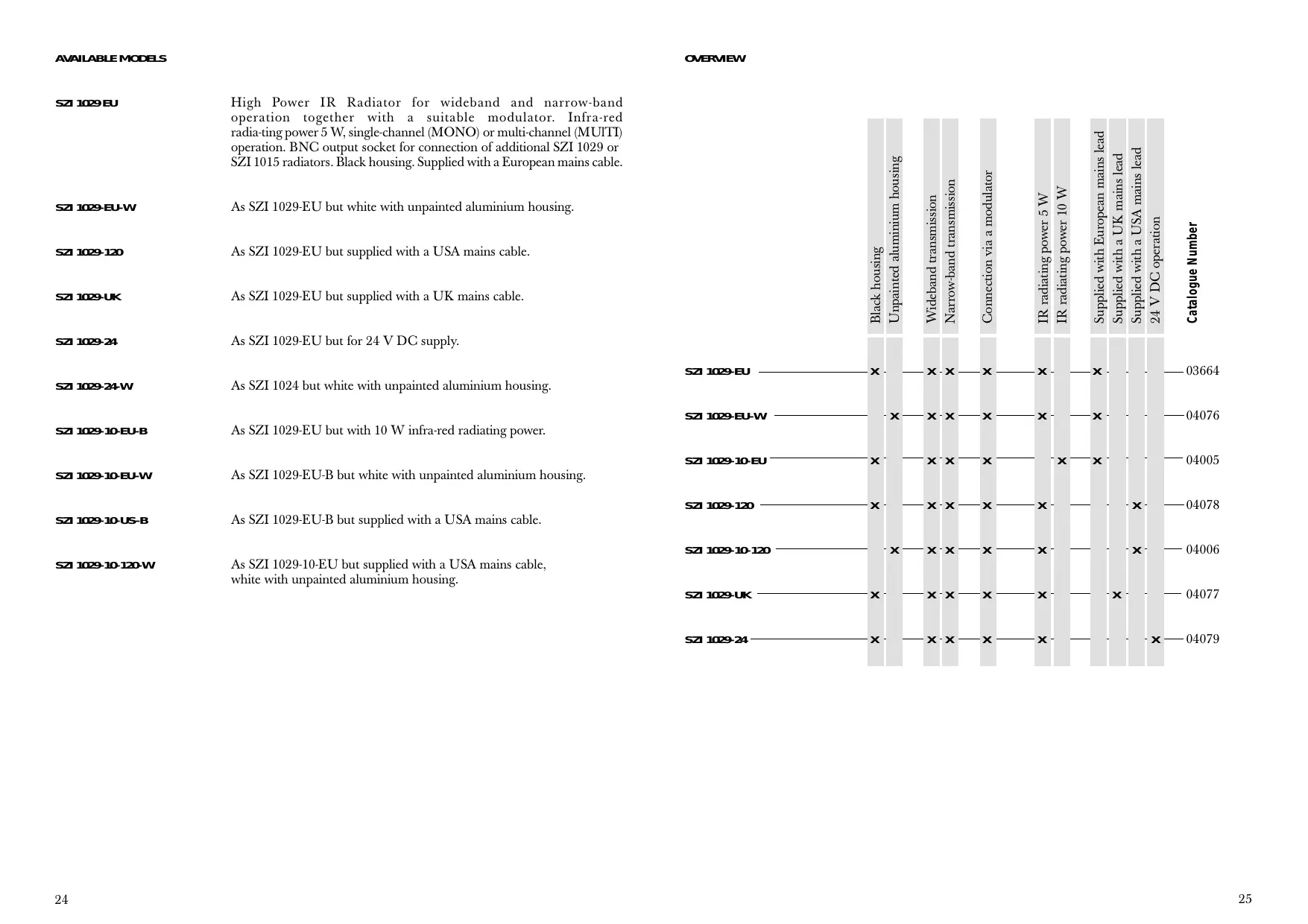 | SZI 1029-120 | As SZI 1029-EU but supplied with a USA mains cable. |