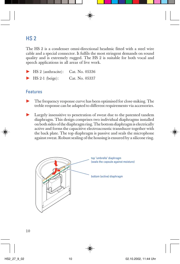 The HS 2 is a condenser omni-directional headmic fitted with a steel wire cable and a special connector. It fulfils the most stringent demands on sound quality and is extremely rugged. The HS 2 is suitable for both vocal and speech applications in all areas of live work.