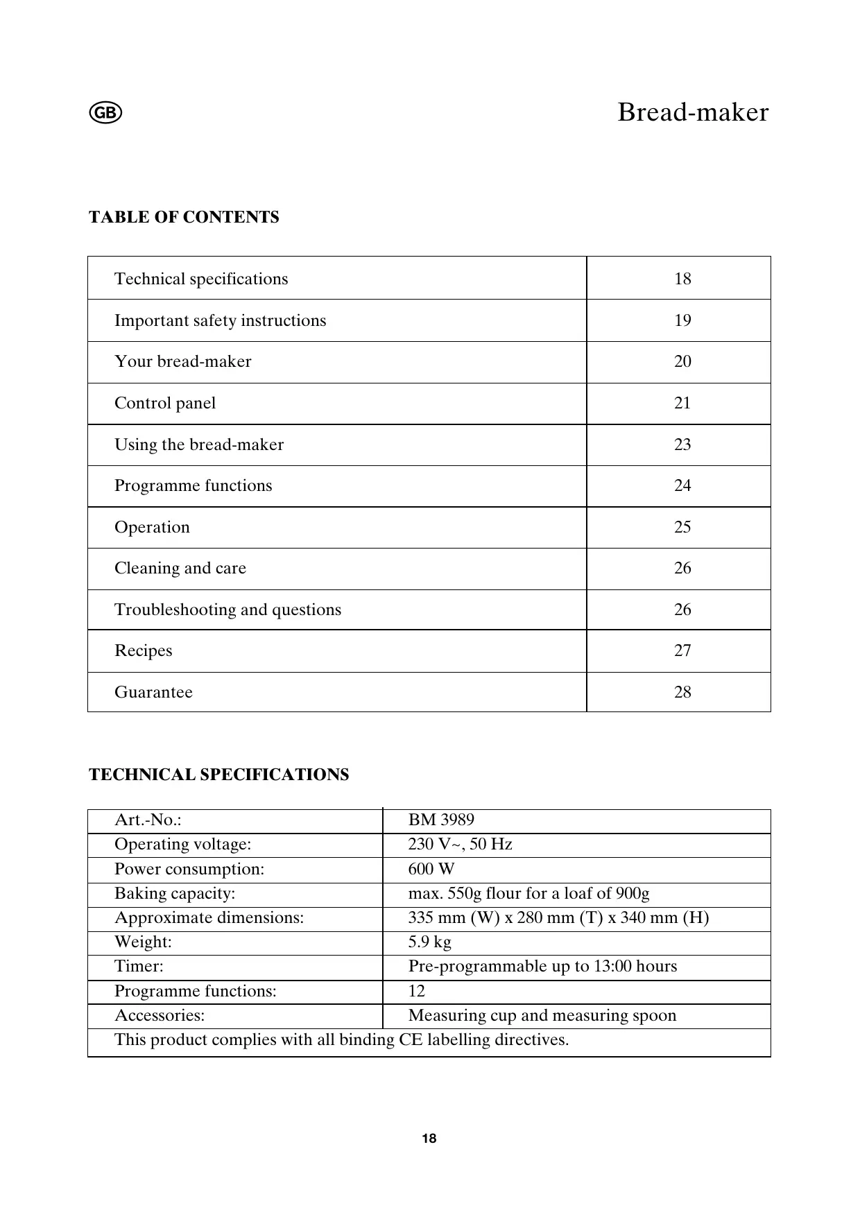 - This bread-maker is intended for domestic use only and not for commercial applications.
