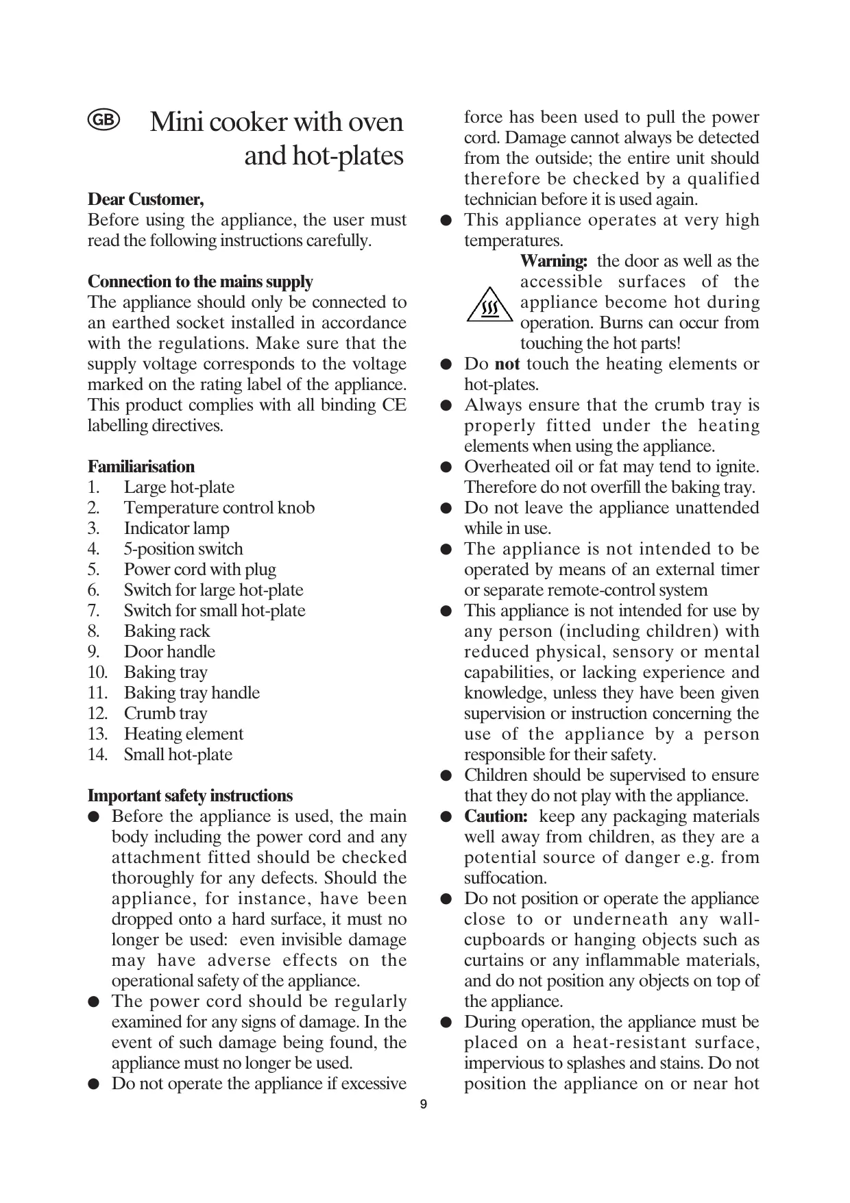 - Do not touch the heating elements or hot-plates.