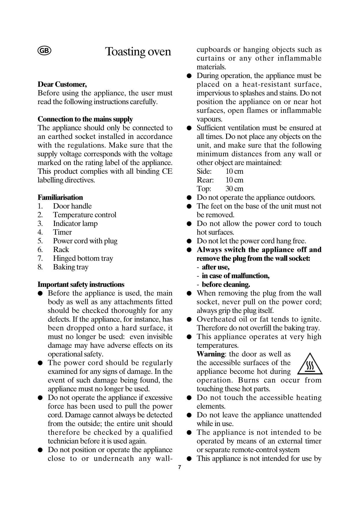 - This appliance operates at very high temperatures.