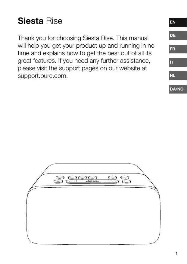 Download the instructions for your in PDF format for free! Find your manual SIESTA RISE - PURE and take your electronic device back in hand. On this page are published all the documents necessary for the use of your device. SIESTA RISE by PURE.
