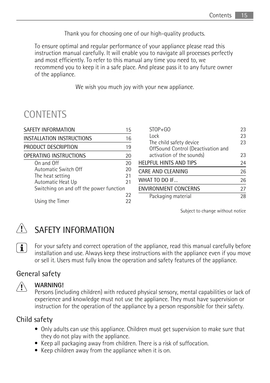 Child safety • Only adults can use this appliance. Children must get supervision to make sure that they do not play with the appliance. • Keep all packaging away from children. There is a risk of suffocation. • Keep children away from the appliance when it is on.