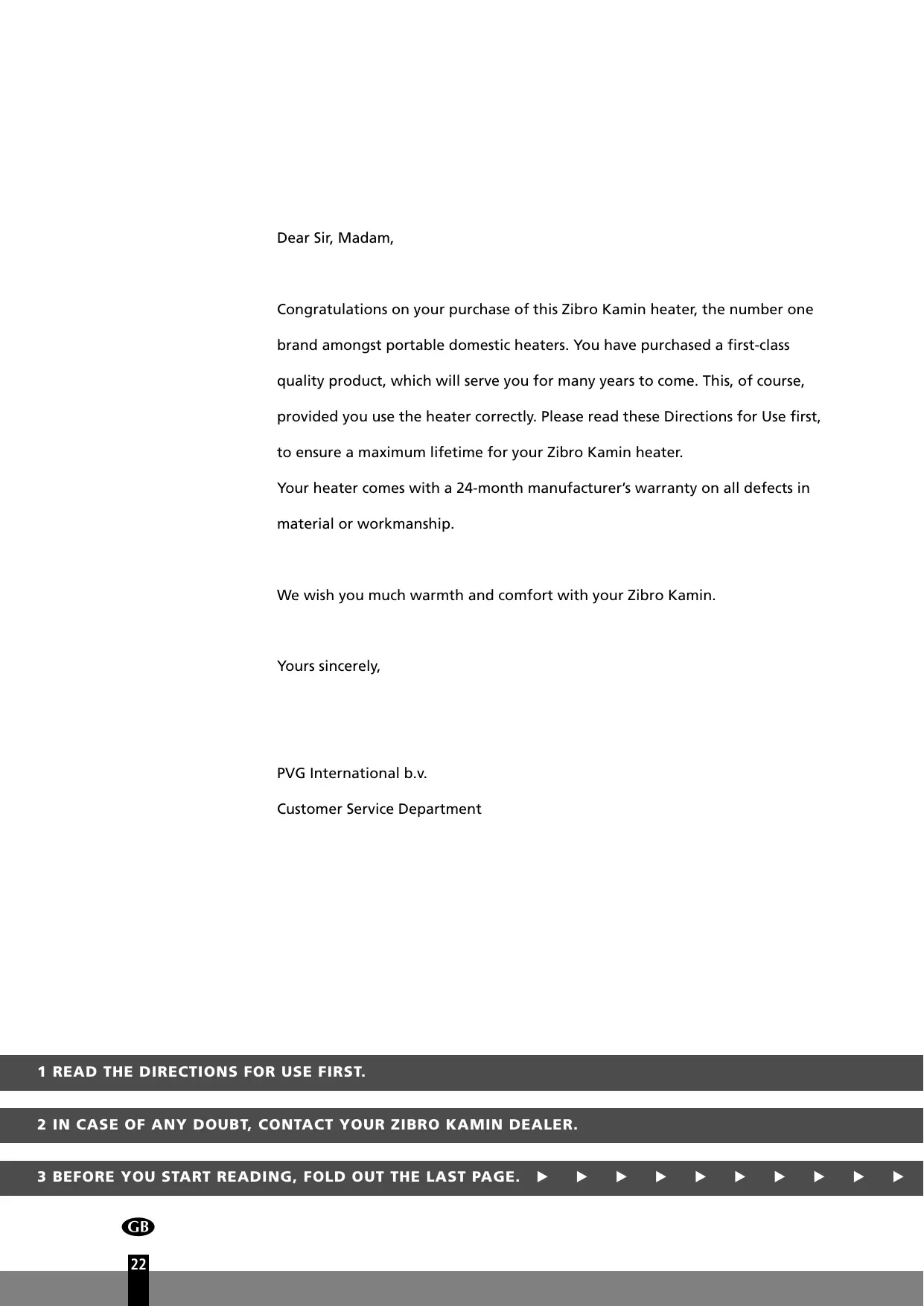 PVG International b.v. - dans tous les cas, l’utilisateur doit vérifier la bonne fermeture de son réservoir rechargé en dehors de toute source de chaleur ou de feux nus (voir le chapitre B). Votre convecteur dégagera une odeur de 'neuf' en chauffant pour la première fois. Conservez votre combustible dans un endroit frais, à l'abri de la lumière après avoir fermé le ou les bidons avec le bouchon d'origine. Le combustible vieillit. Utilisez à chaque début de saison de chauffage du nouveau combustible. Si vous chauffez au Zibro Plus vous êtes assurés d'avoir un combustible de bonne qualité et conforme à l'arrêté du 8/1/1998 relatif aux caractéristiques du combustible liquide pour appareils mobiles de chauffage. Si vous changez de marque et/ou de type de pétrole, vous devez d'abord vous assurer que le convecteur à pétrole consomme entièrement le combustible présent.
