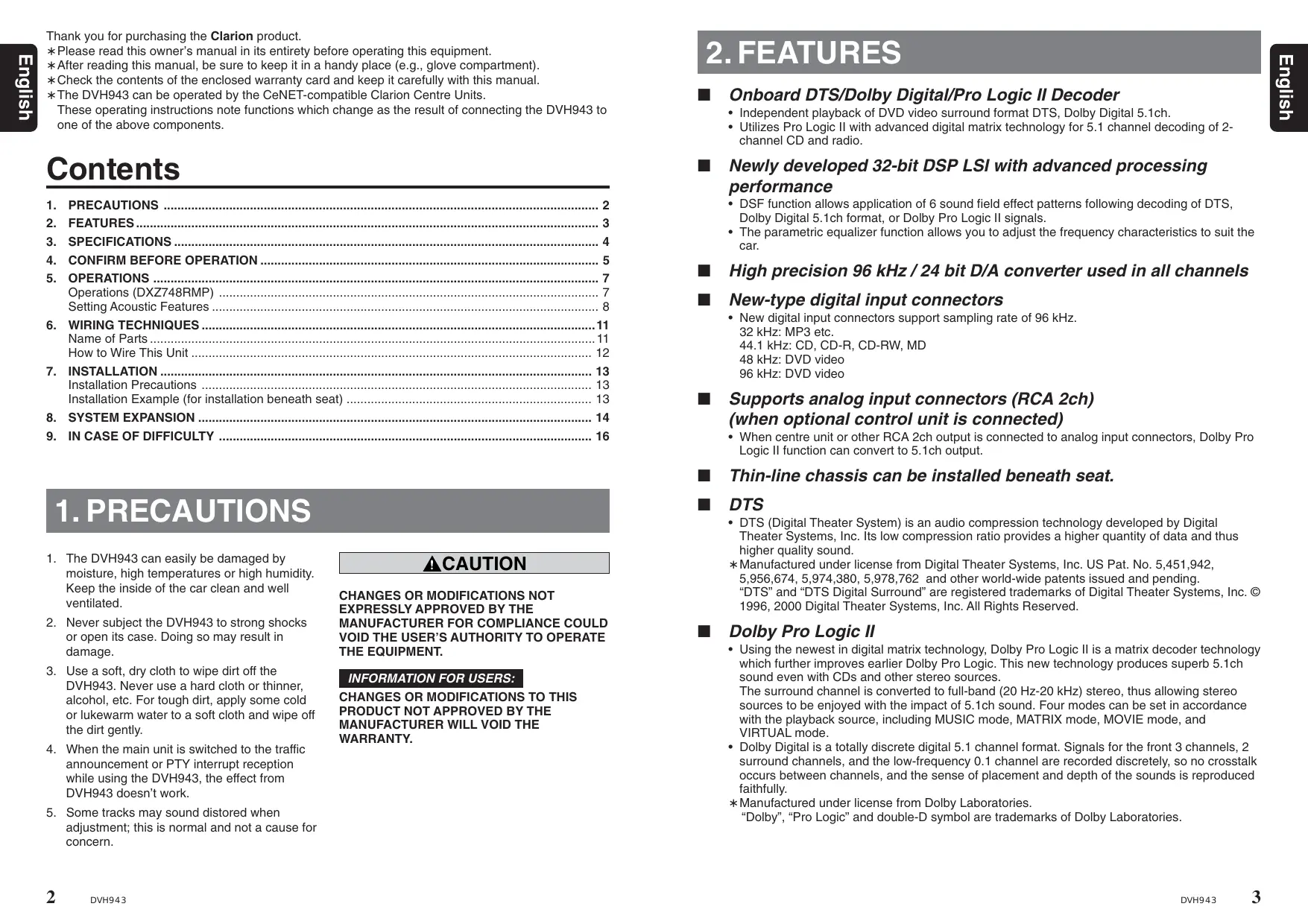 USER MANUAL DVH943 CLARION