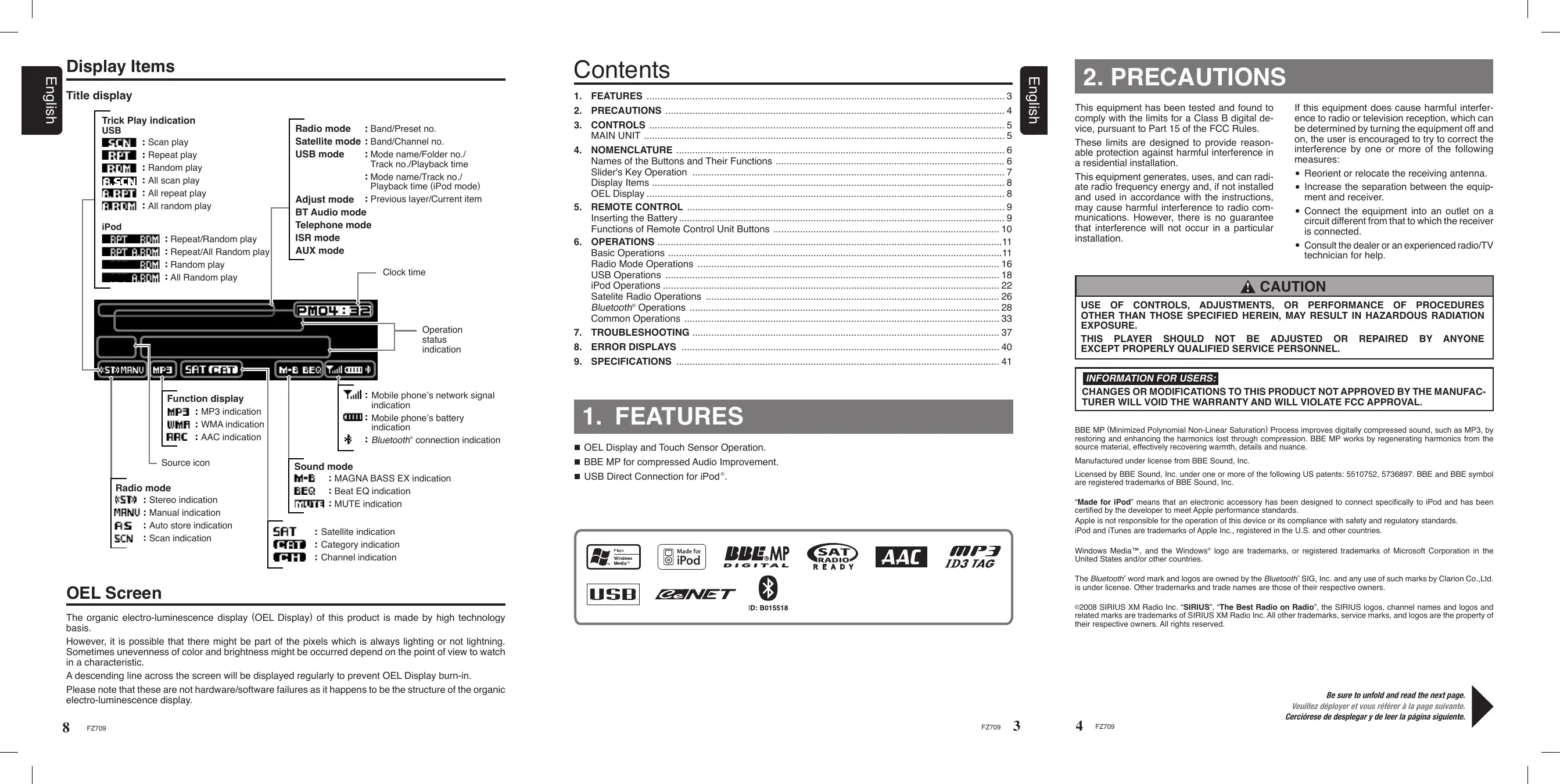 USER MANUAL FZ709 CLARION