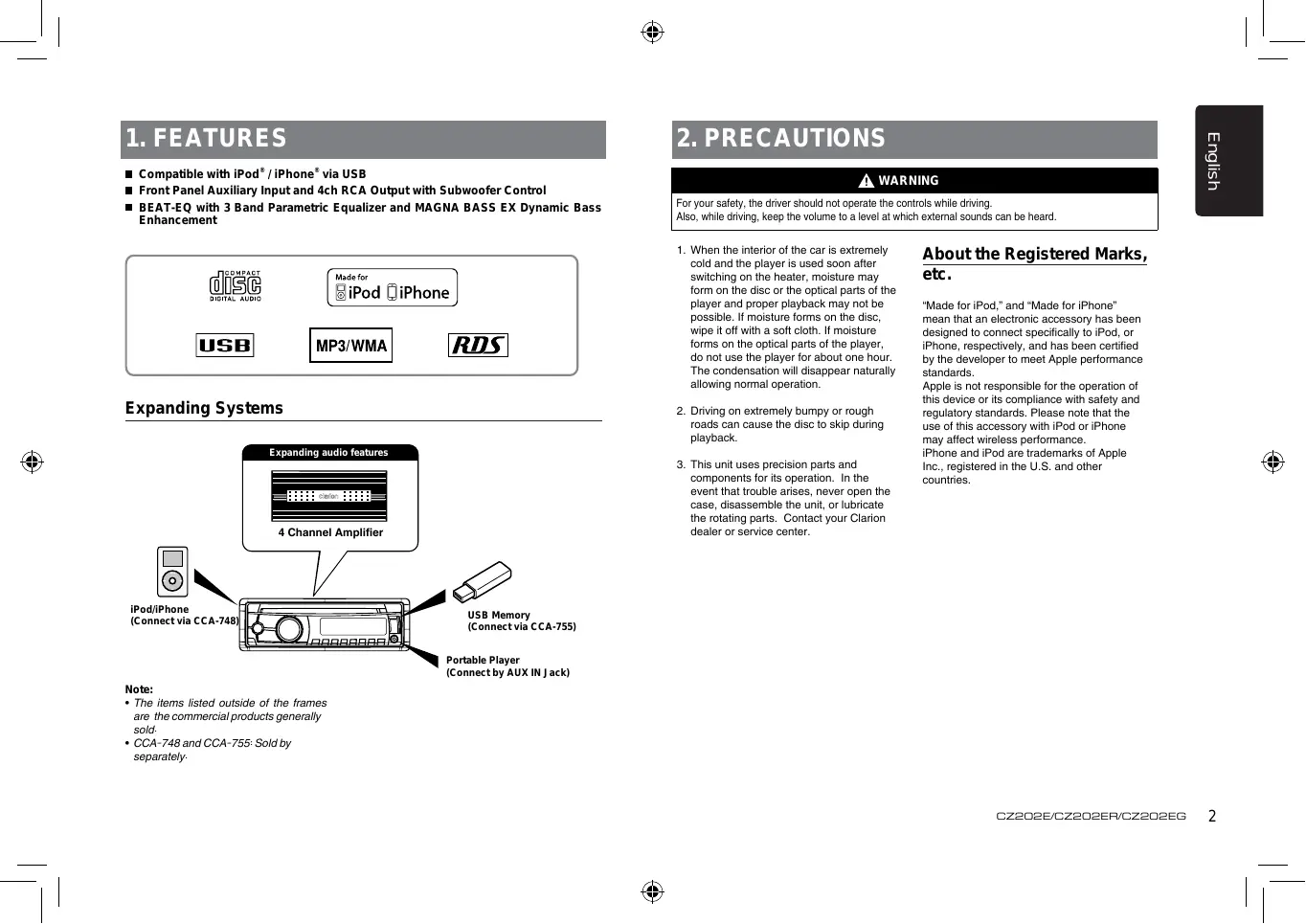 CZ202E - Car stereo CLARION - Free user manual and instructions