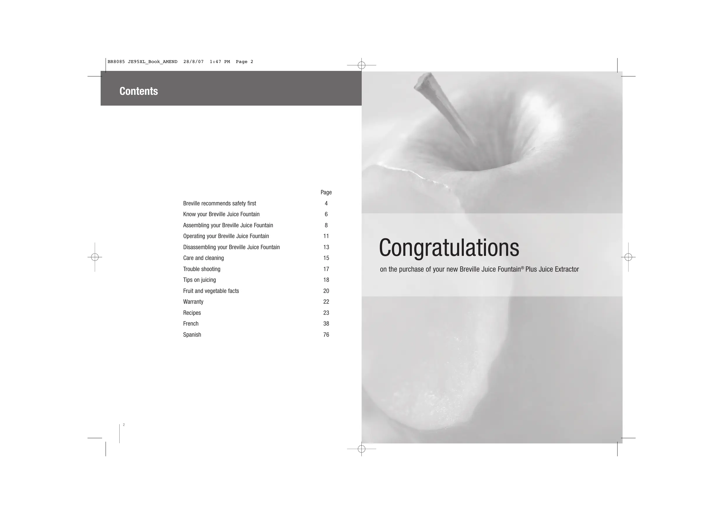 Breville > BR8085 > JE95XL BOOK AMEND > GW A5 Instruction Booklet PMS 8403 and BLACK Ver. 01 14/12/06 3:30PM BR8085 JE95XL_Book_AMEND 28/8/07 1:47 PM Page 2 Contents Page