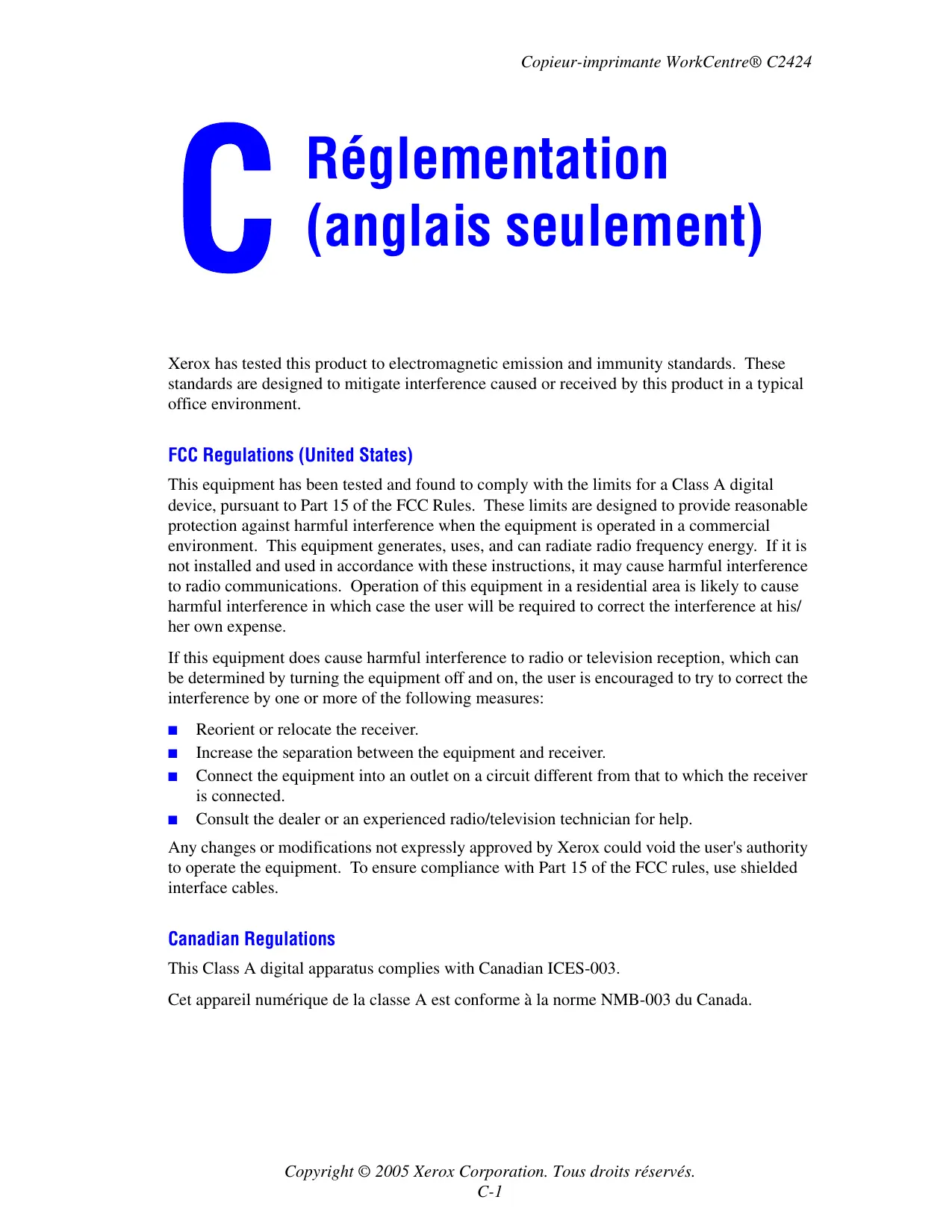Copyright © 2005 Xerox Corporation. Tous droits réservés. C-1
