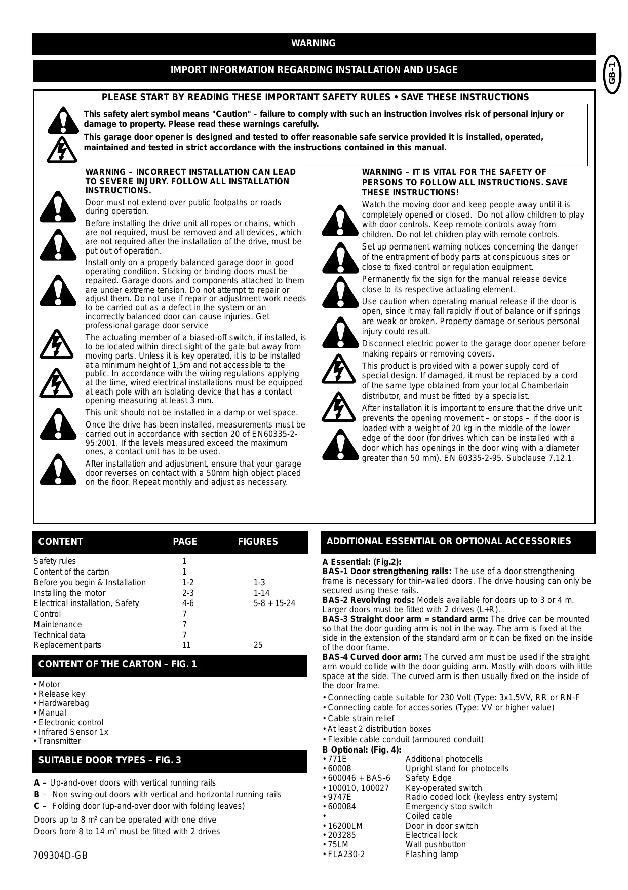 709304D-GB WARNING – IT IS VITAL FOR THE SAFETY OF PERSONS TO FOLLOW ALL INSTRUCTIONS. SAVE THESE INSTRUCTIONS!