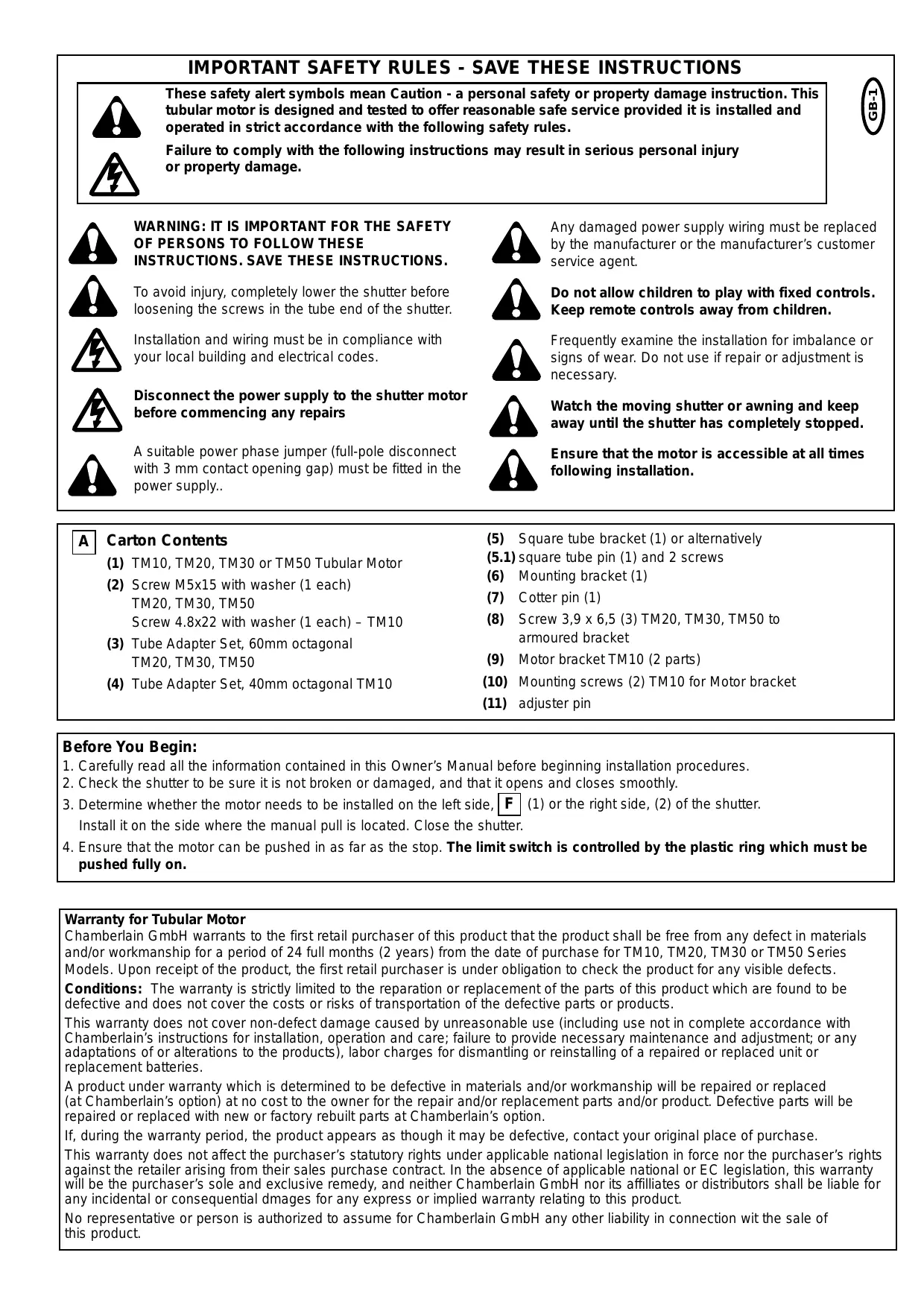 TM30 - CHAMBERLAIN - Free user manual and instructions