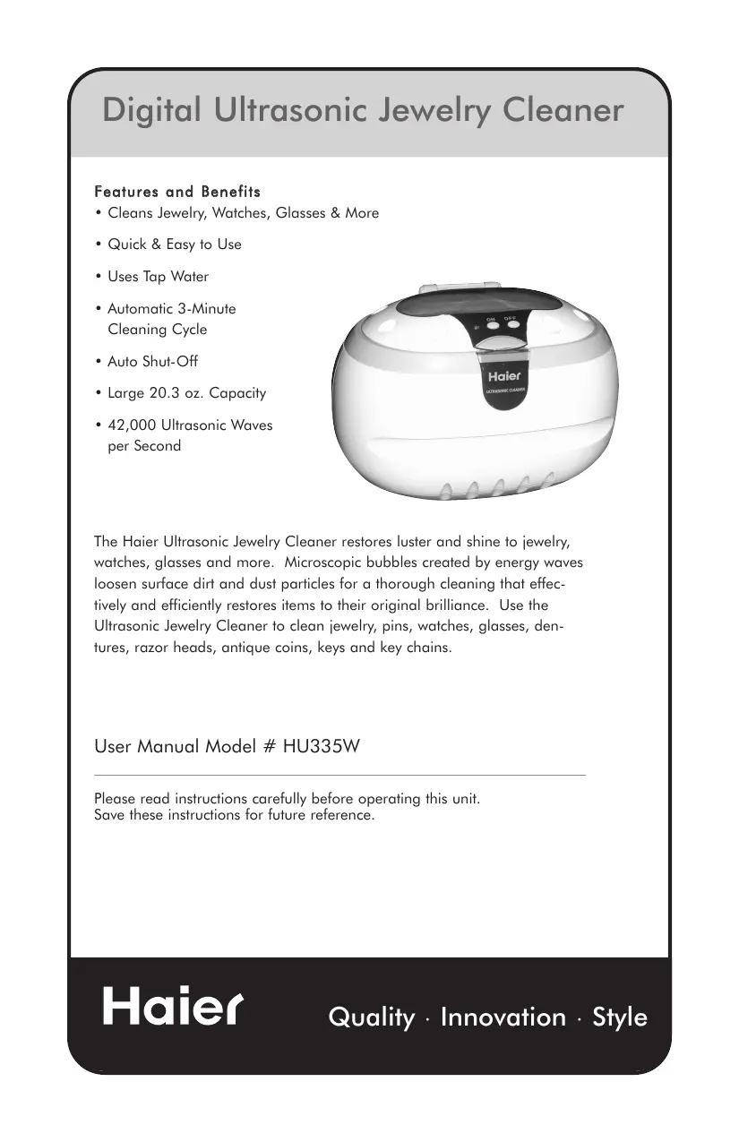 HU335W - Ultrasonic Cleaner HAIER - Free user manual and instructions
