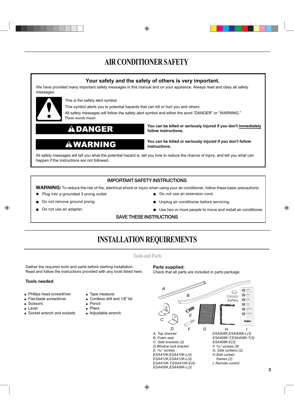 ESA410K-E - Air-conditioner HAIER - Free user manual and instructions