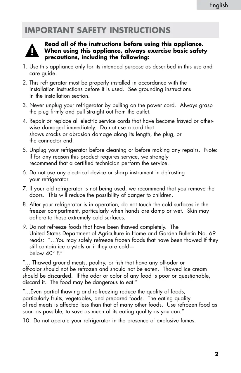 10. Do not operate your refrigerator in the presence of explosive fumes.