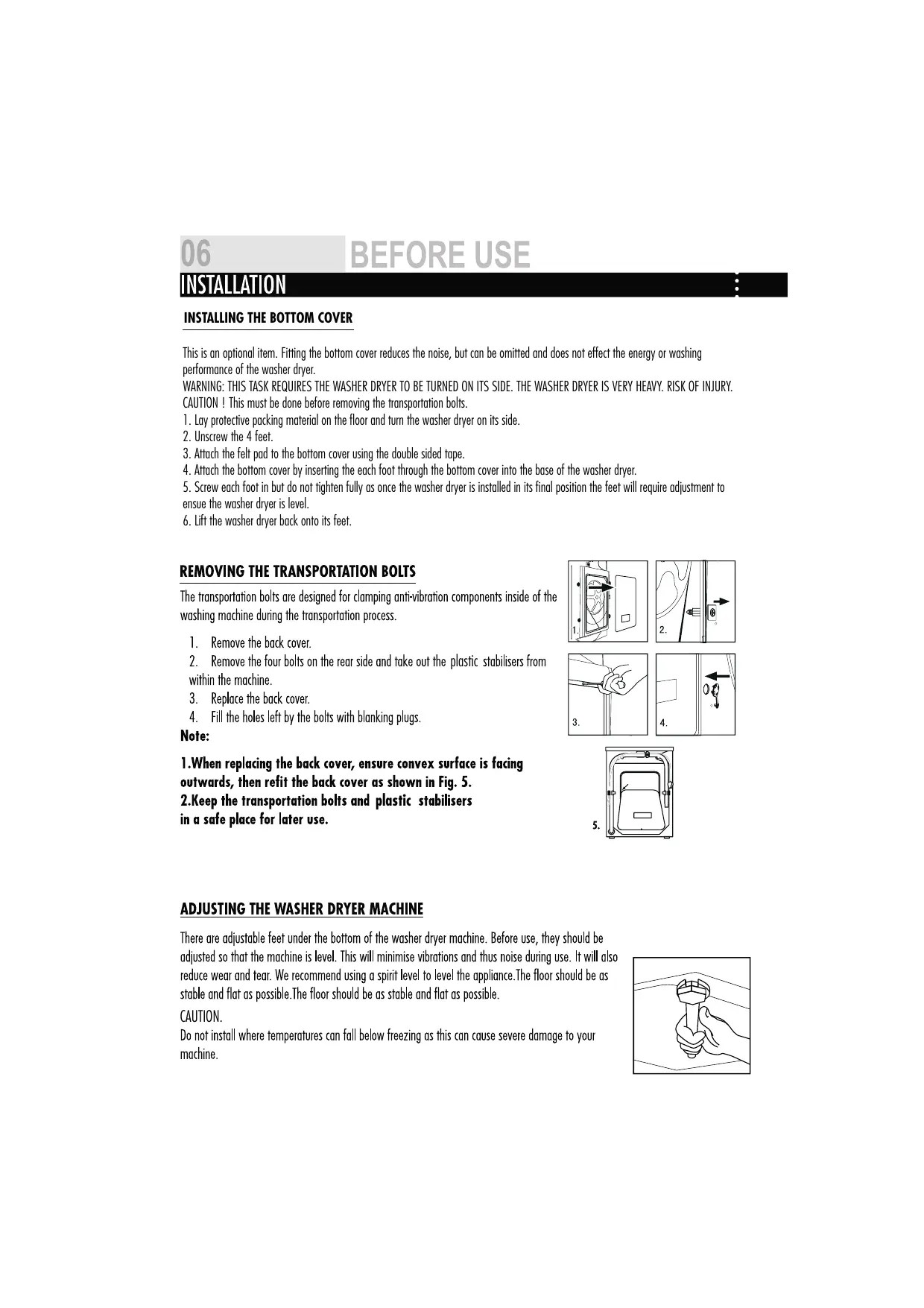 CAUTION ! This must be done before removing the transportation bolts.