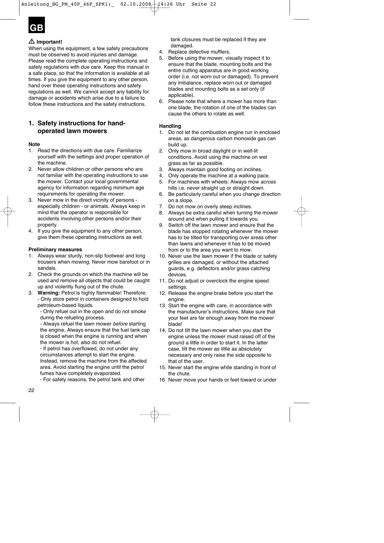The operating instructions as supplied by the manufacturer must be kept and referred to in order to ensure that the lawn mower is properly used and maintained. The instructions contain valuable information on operating, maintenance and servicing conditions.