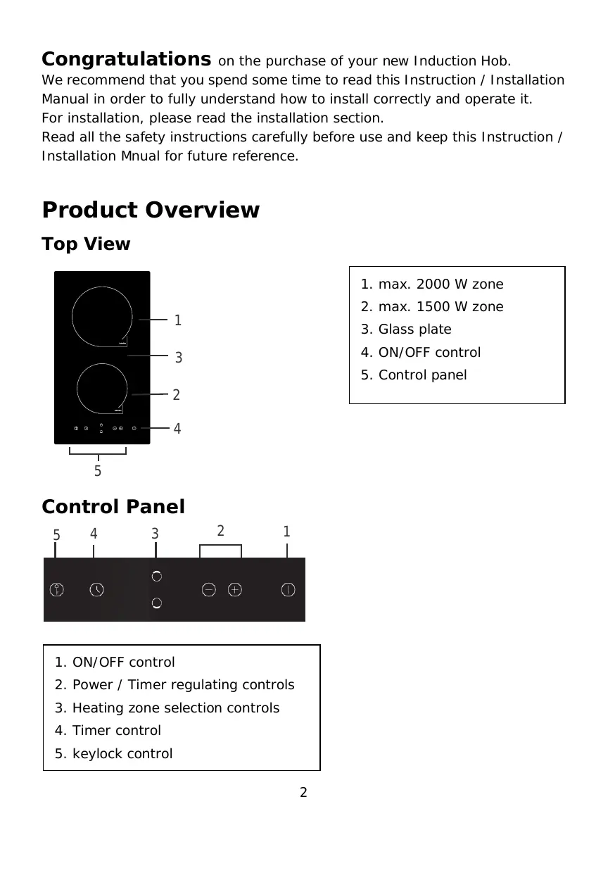 CEICT2 - Induction cooktop CONTINENTAL EDISON - Free user manual and instructions