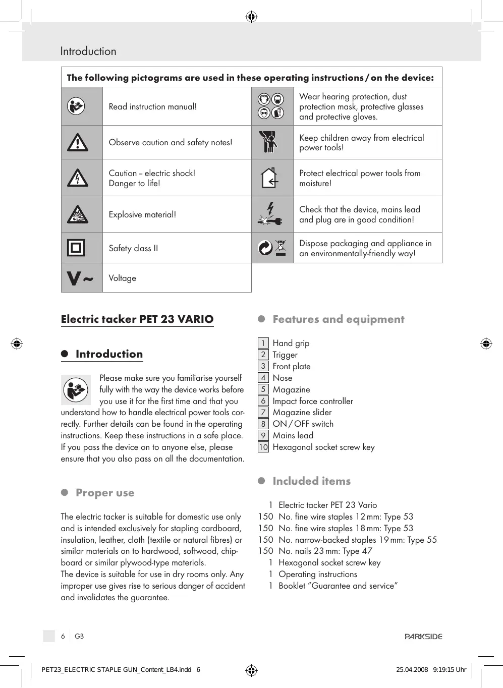 PET23 VARIO - PARKSIDE - Free user manual and instructions