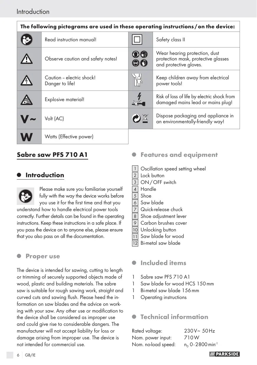 PFS 710 A1 SABRE SAW - Scie sabre PARKSIDE - Free user manual and instructions