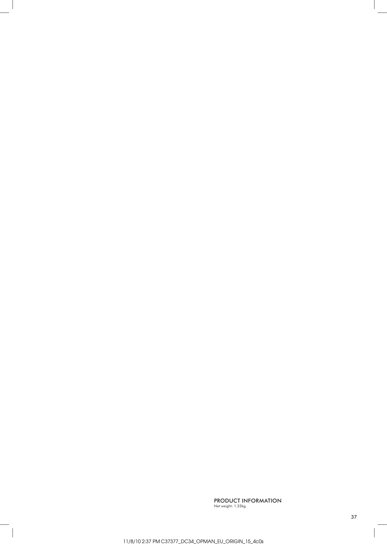 11/8/10 2:37 PM C37377_DC34_OPMAN_EU_ORIGIN_15_4c0s PRODUCT INFORMATION Net weight: 1.33kg.