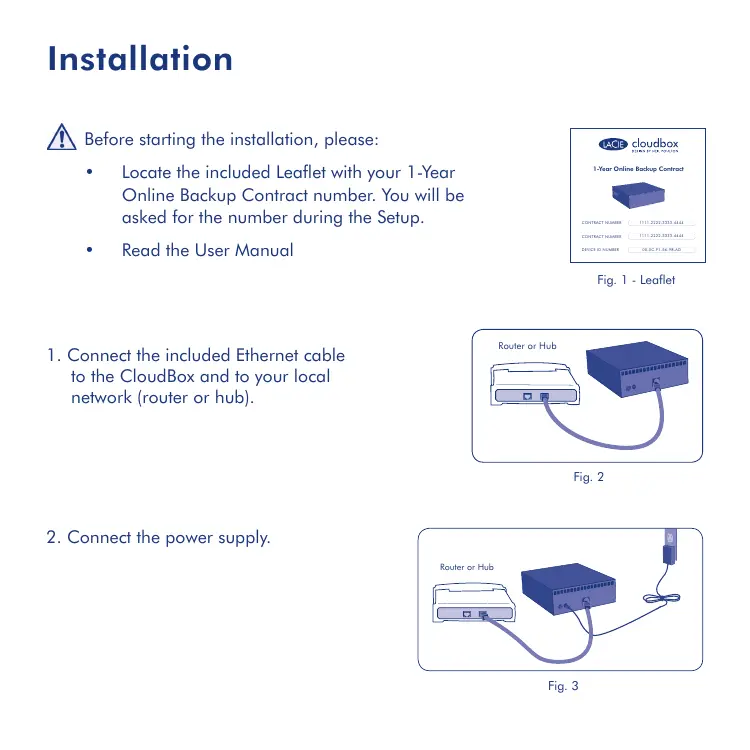 to the CloudBox and to your local network (router or hub). Fig. 2