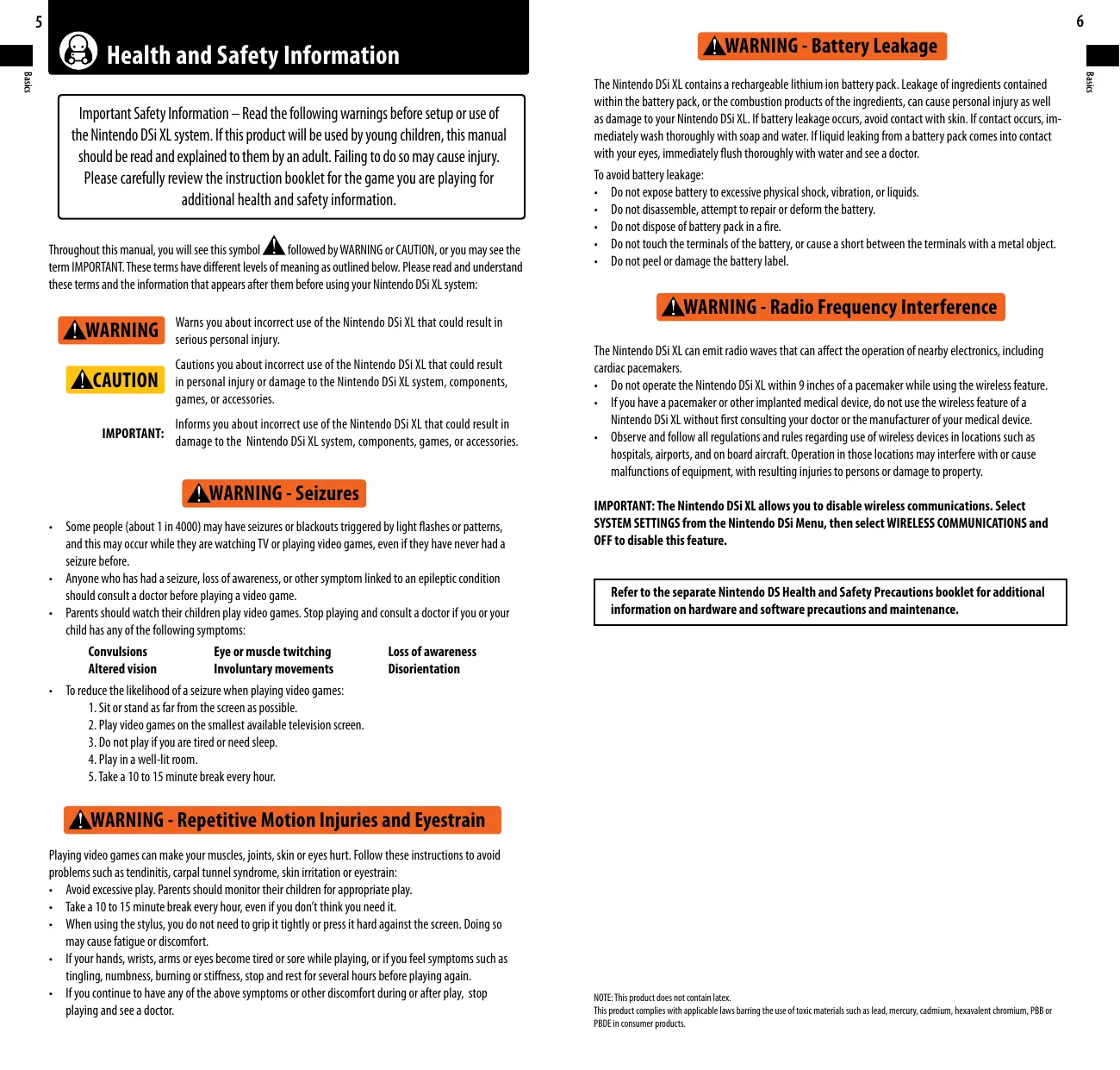 Important Safety Information — Read the following wamings before setup or use of the Nintendo DSi XL system. Ifthis product will be used by young children, this manual should be read and explained to them by an adult. Failing to do so may cause injury. Please carefully review the instruction booklet for the game you are playing for additional health and safety information.