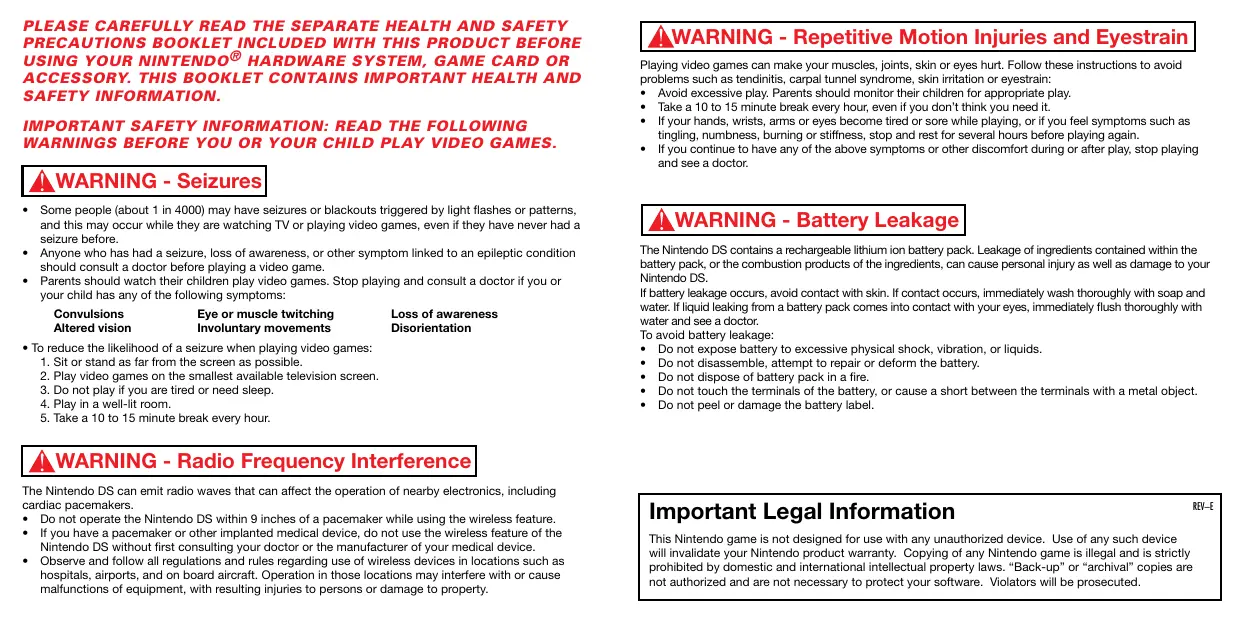 The Nintendo DS can emit radio waves that can affect the operation of nearby electronics, including cardiac pacemakers.