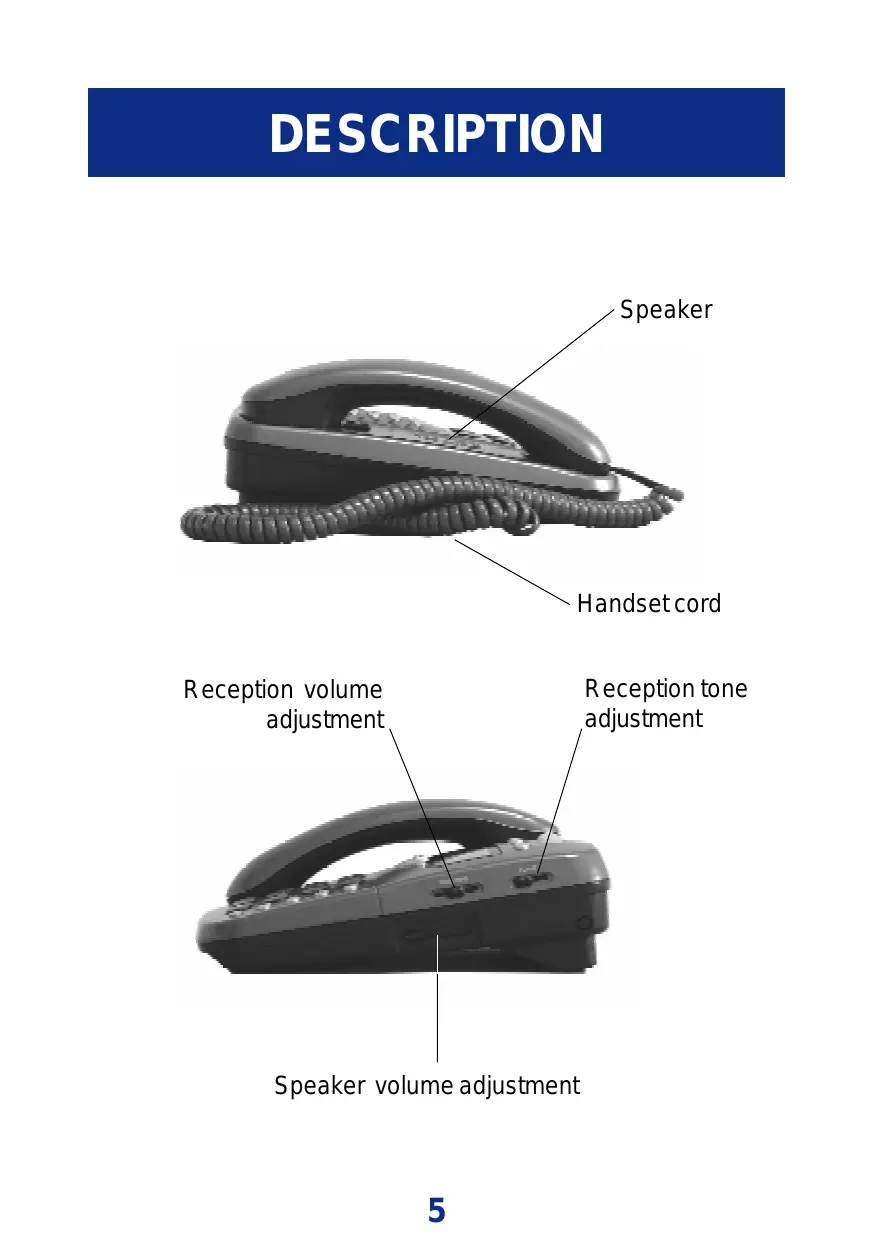 Note: You may adjust reception volume and tone using VOLUME and TONE keys located on the right side of your telephone. You have to connect first the adaptor to activate the VOLUME and TONE adjustment function.