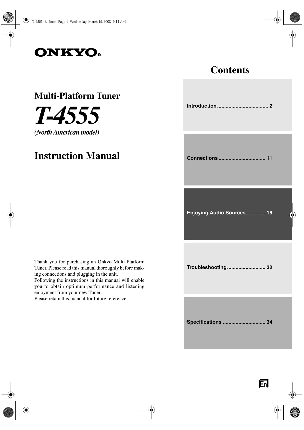 SP) T-1555_En.book Page 1 Wednesday, March 19, 2008 9:14 AM ONKYO.:.