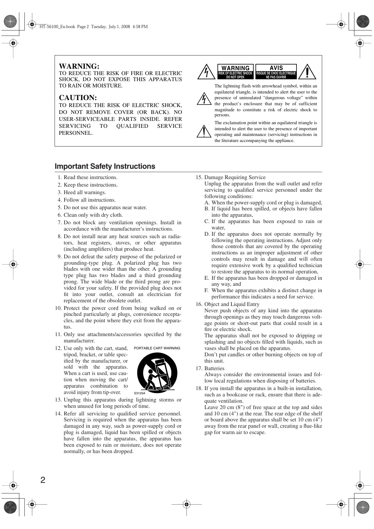 & HT-S6100_Enbook Page 3 Tuesday, July 1, 2008 4:58 PM Precautions