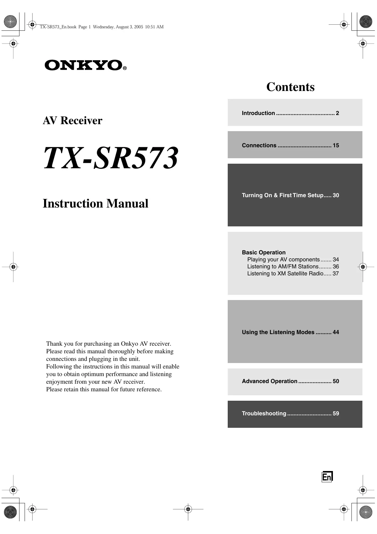 4 4ll@ LA TX-SR573_En.book Page 1 Wednesday, August 3, 2005 10:51 AM @r