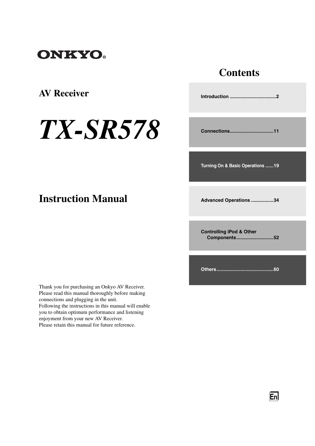 Download the instructions for your Récepteur audio-vidéo in PDF format for free! Find your manual TX-SR578 - ONKYO and take your electronic device back in hand. On this page are published all the documents necessary for the use of your device. TX-SR578 by ONKYO.