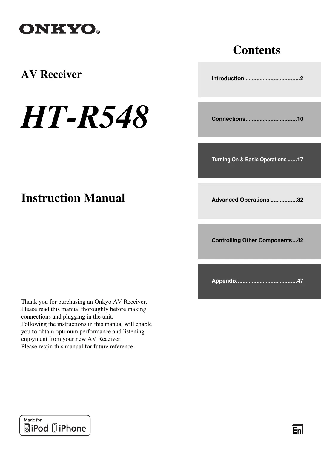 HT-R548 - Récepteur audio/vidéo ONKYO - Free user manual and instructions