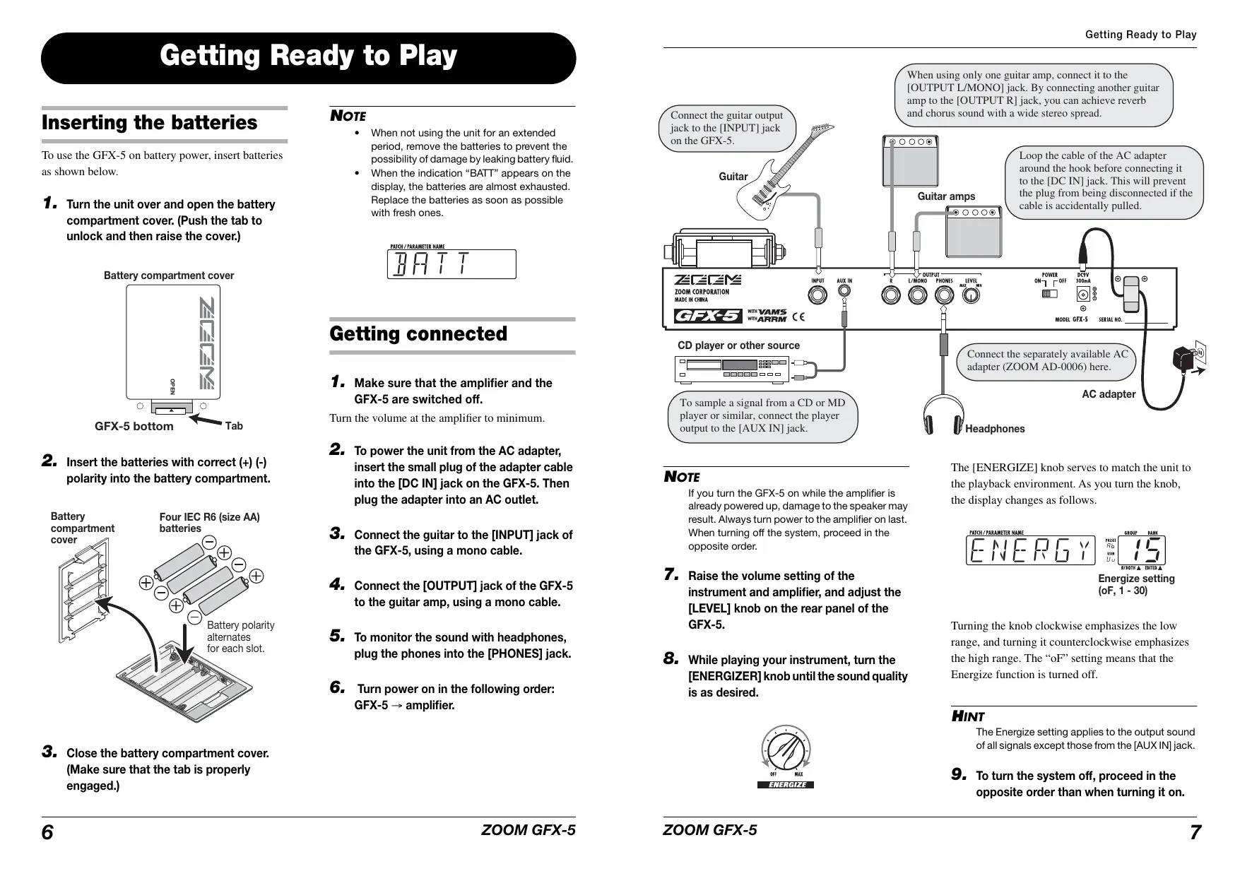 GFX-5 - Pédale d'effets pour guitare ZOOM - Free user manual and instructions