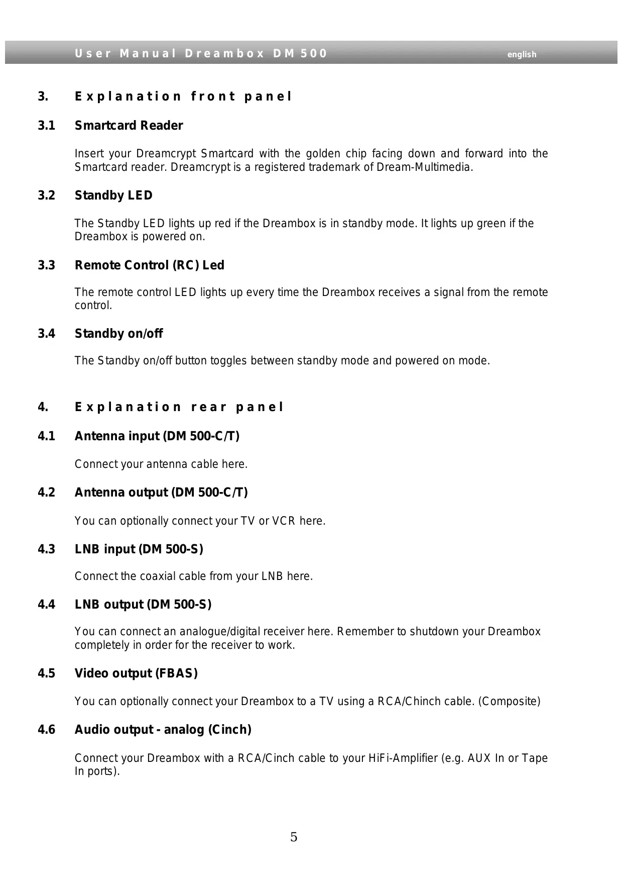 USER MANUAL DREAM DREAMBOX DM-500S DREAM MULTIMEDIA