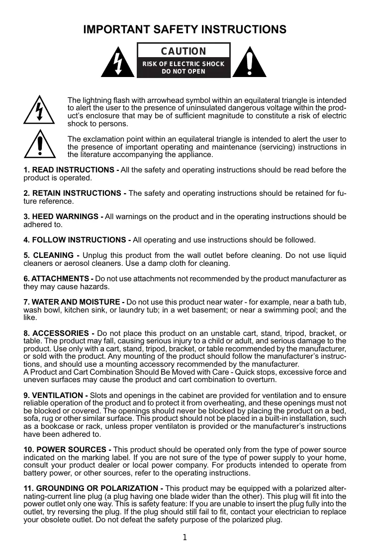 1. READ INSTRUCTIONS - All the safety and operating instructions should be read before the product is operated.