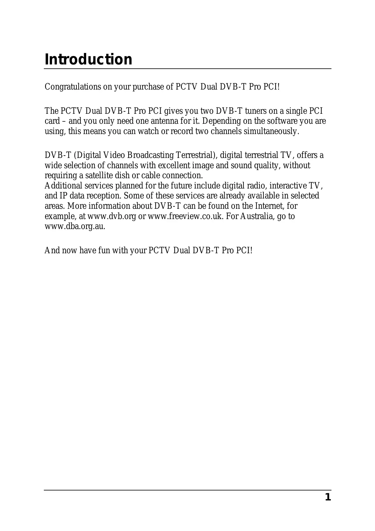 PCTV DUAL DVB-T PRO PCI - Carte tuner TV PINNACLE - Free user manual and instructions