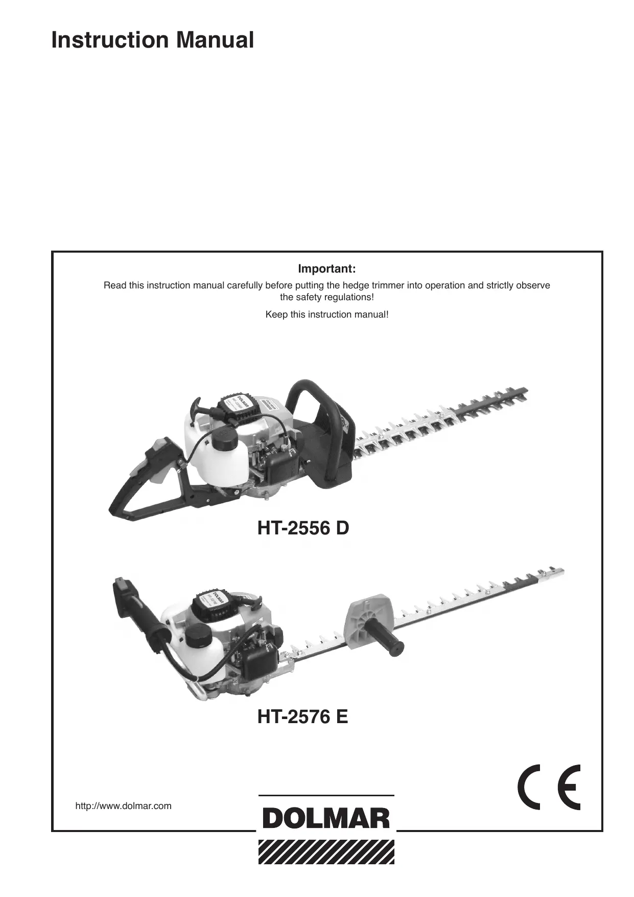 CE Thank you for purchasing a DOLMAR product! Congratulations on your new DOLMAR power hedge trimmer! We hope that you will be satisfied with this modern tool. DOLMAR is the world's oldest manufacturer of power chainsaws (since 1927). We have the longest experience in the business, and every DOLMAR hedge trimmer benefits from that experience. The HT-2556 D and HT-2576 E models are especially handy and robust hedge trimmers, with plenty of performance and a good power-to-weight ratio.