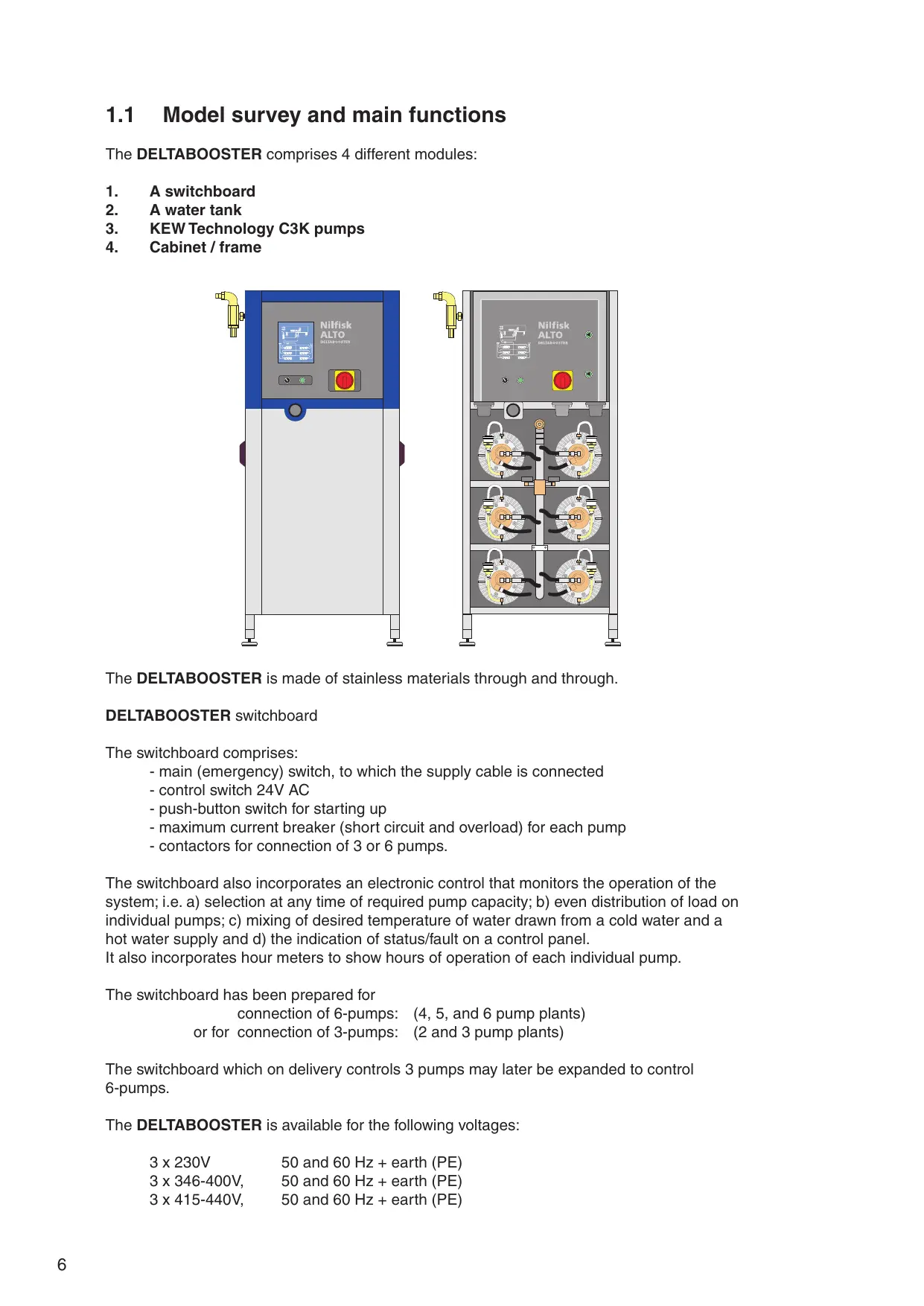 1.3.0 Switchboard 1.3.1 Water tank. 1.3.2 C3K pumps. 1.8.3 Dimensions, weight and total performance for systems