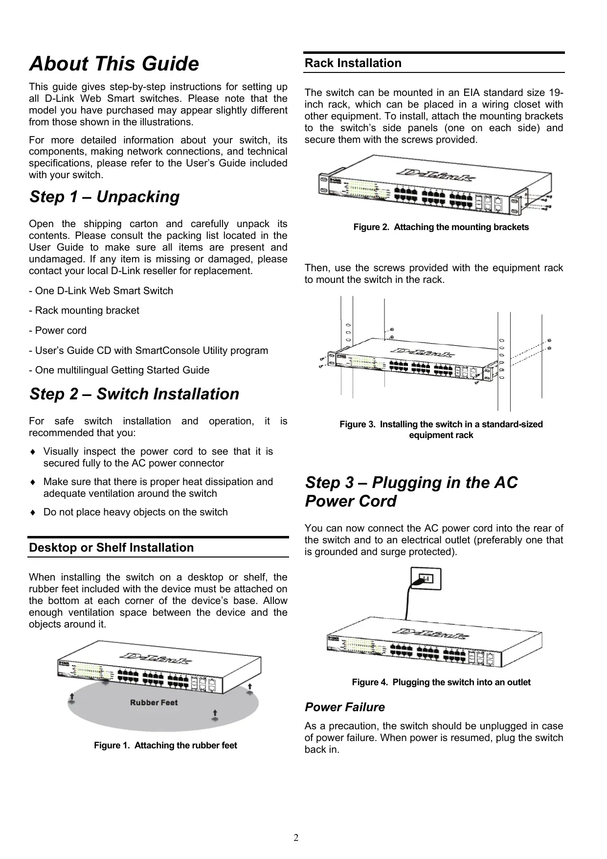 This guide gives step-by-step instructions for setting up all D-Link Web Smart switches. Please note that the model you have purchased may appear slightly different from those shown in the illustrations.