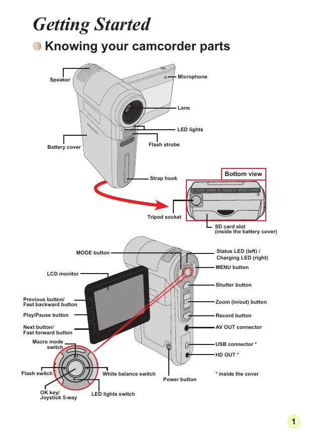 Recording a video clip 6 Taking a still picture 7 Playing back your recordings 8 Playing back your recordings on PC 9 Connecting the camcorder to TV 10