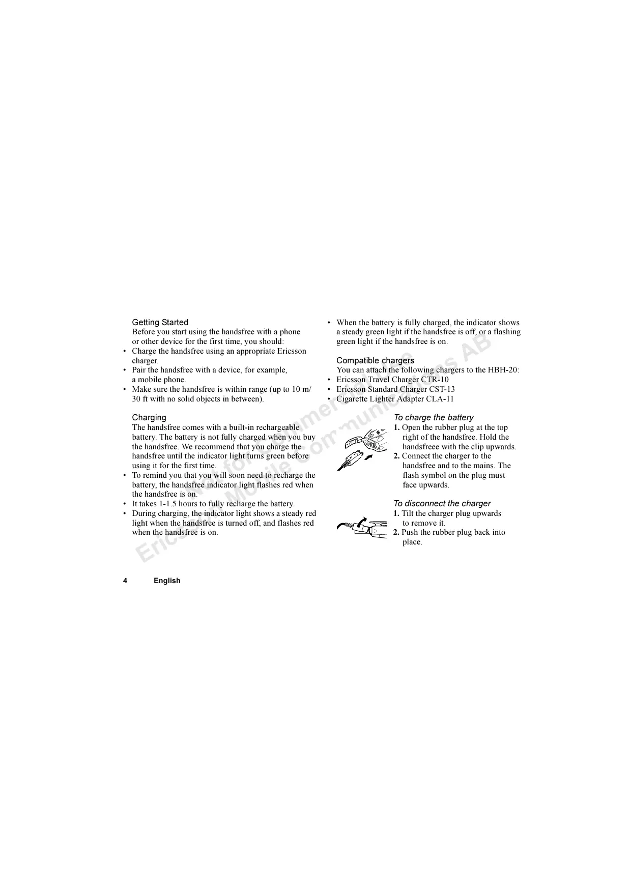 HBH-20 - Bluetooth Headset ERICSSON - Free user manual and instructions