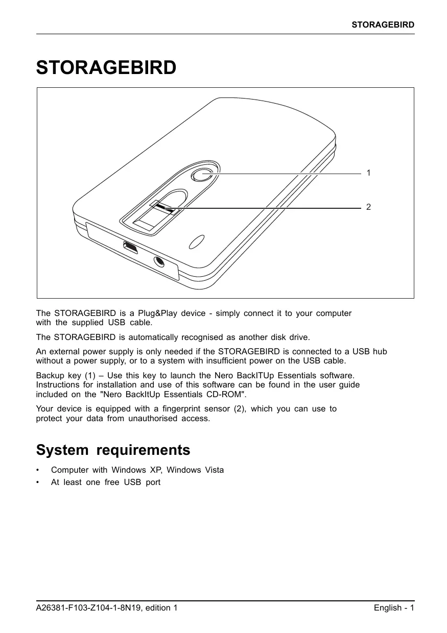 Download the instructions for your External hard drive in PDF format for free! Find your manual STORAGEBIRD SOLO 25-UP - FUJITSU SIEMENS and take your electronic device back in hand. On this page are published all the documents necessary for the use of your device. STORAGEBIRD SOLO 25-UP by FUJITSU SIEMENS.
