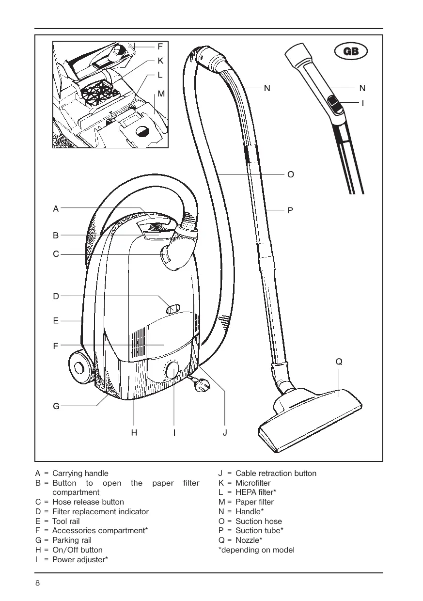 - Do not vacuum matches, glowing ashes or cigarette ends using the appliance. Avoid picking up hard, pointed objects as these may damage the appliance or the paper filter.