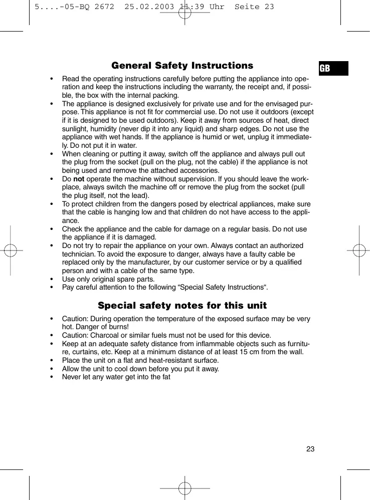 Download the instructions for your Electric grill in PDF format for free! Find your manual BQ 2672 - CLATRONIC and take your electronic device back in hand. On this page are published all the documents necessary for the use of your device. BQ 2672 by CLATRONIC.