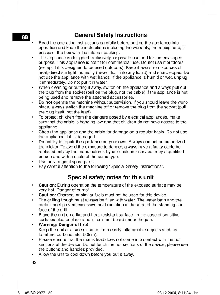Download the instructions for your Electric grill in PDF format for free! Find your manual BQ 2977 - CLATRONIC and take your electronic device back in hand. On this page are published all the documents necessary for the use of your device. BQ 2977 by CLATRONIC.