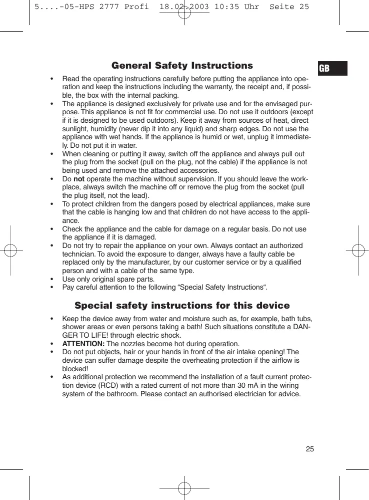 Download the instructions for your Hair dryer in PDF format for free! Find your manual HPS 2777 - CLATRONIC and take your electronic device back in hand. On this page are published all the documents necessary for the use of your device. HPS 2777 by CLATRONIC.
