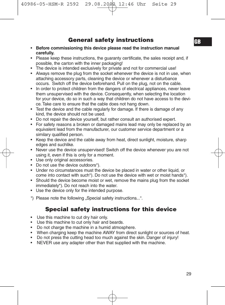 HSMR 2592 - Hair clippers CLATRONIC - Free user manual and instructions