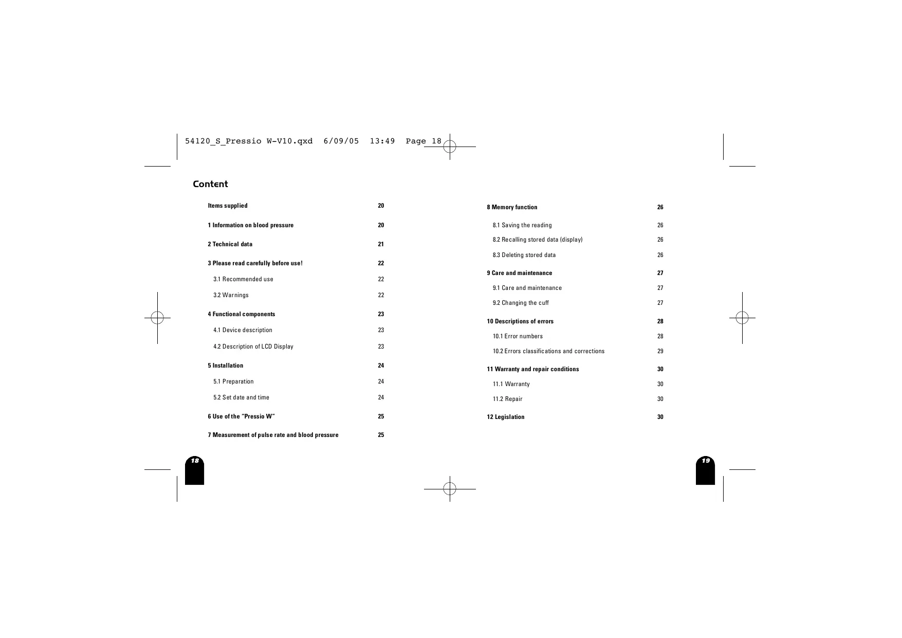 "Pressio W" conforms to the European specifications on which medical products legislation is based. The quality of the equipment has been examined under EC regulation 93/42/EEC and bears the mark CE0197. 30